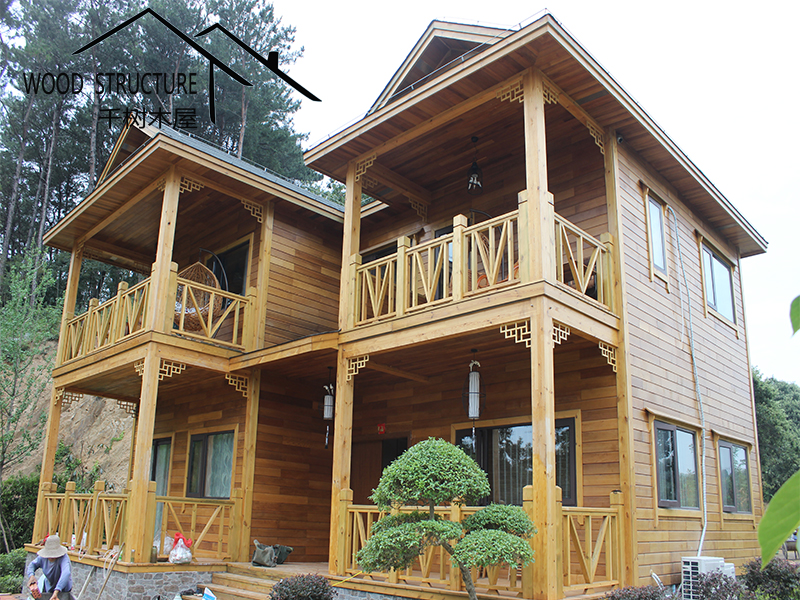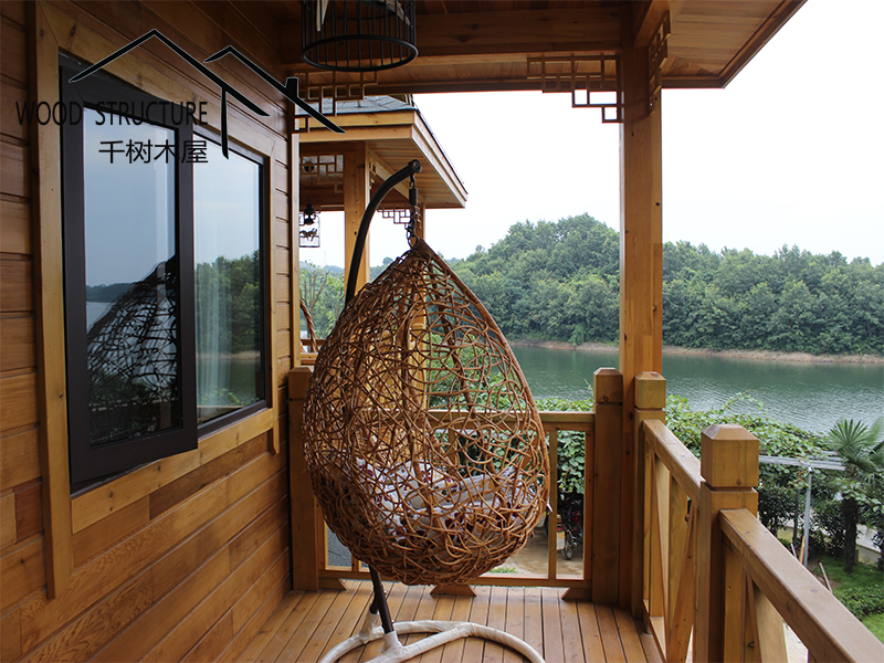 信阳木屋项目位于风景秀美的国家4A级景区南湾湖风景区内,中式木屋风格,上下两层,建筑面积为199.68平方米。