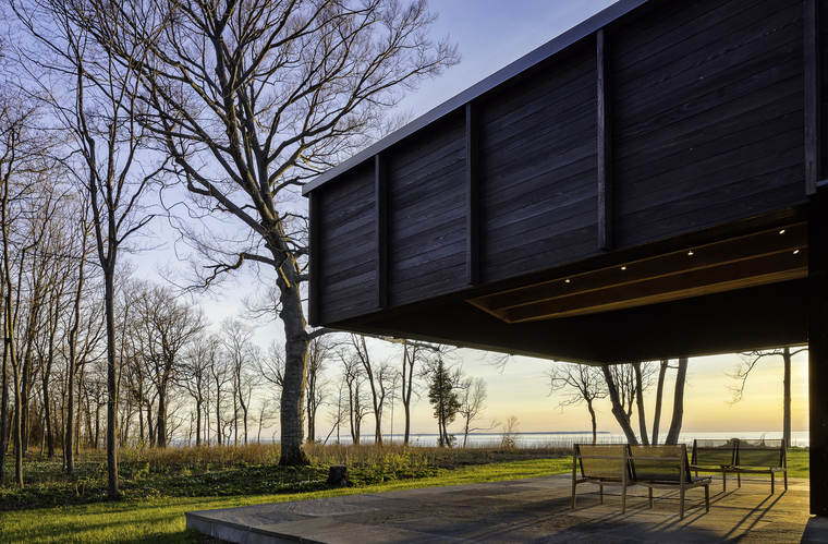 密歇根州特拉弗斯城的EnvironmentArchitects (AOR)设计了一栋栖息在木从中的