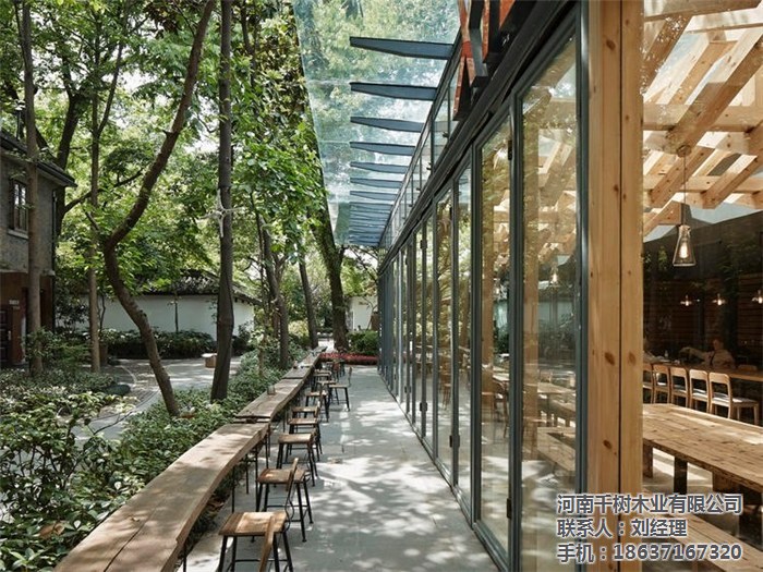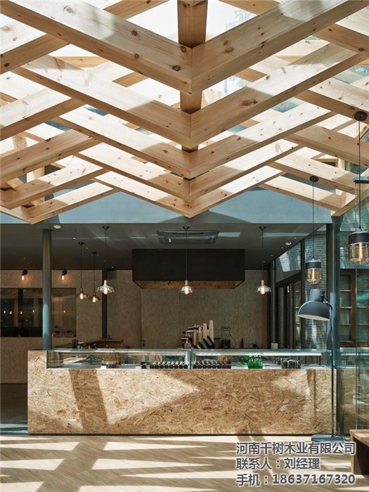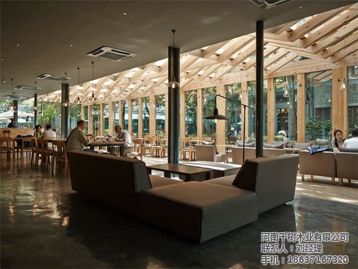 值得一说的是建筑玻璃屋顶的双层方管结构,设计团队在这一结构本身的基础上,加入了温暖的原木色木梁,并按照编织纹理的式样加以组织,看上去颇为有趣。