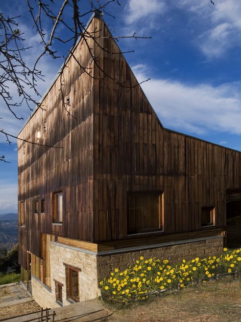 空间由三个不同的层次组成,每一个都大约占用14.5米x3.6 m的自然地形,外立面的连续横窗使得周围的果园和Almora镇的壮观景色一览无余。这个开窗像是一个裂缝,成为现场挖出的裸露的干石墙基地和当地名为thun木材包覆之间的过渡。