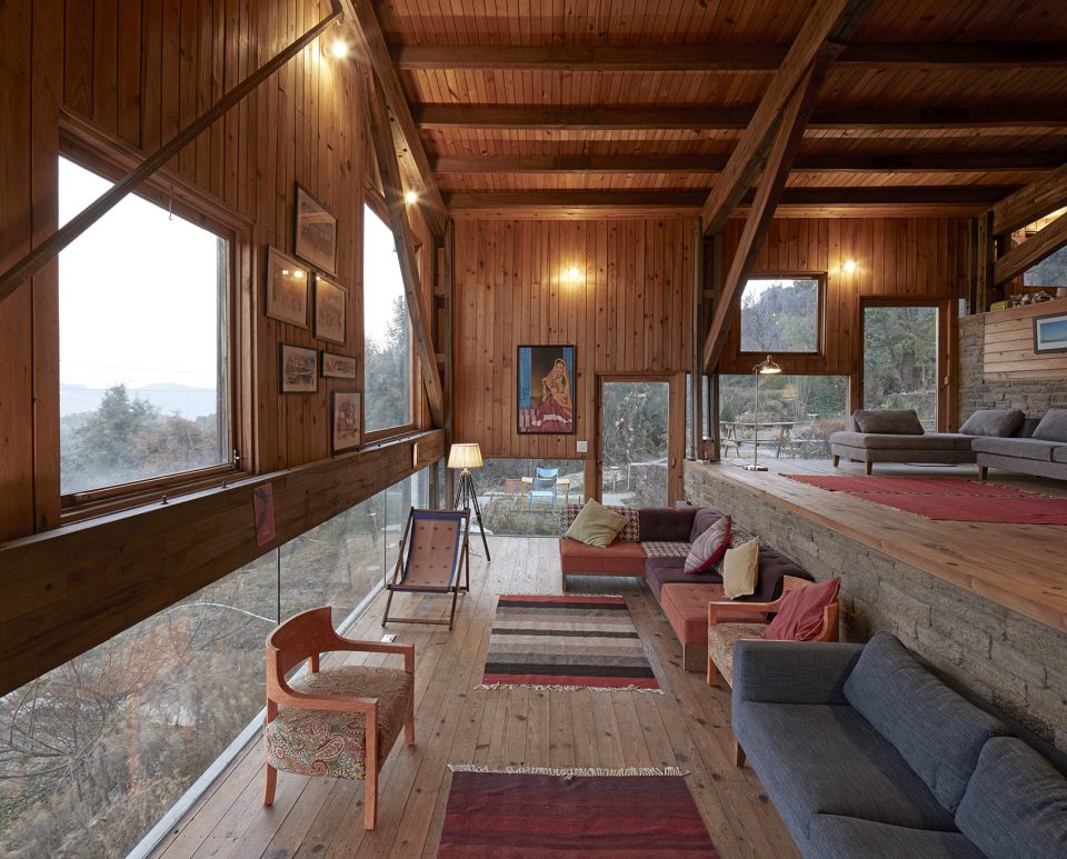 这所房子坐落在海拔2000米的Nanital地区的Satkol村,周围只有传统的乡村房屋,反映出当地农民的简朴生活。它是为自用而建的度假屋。