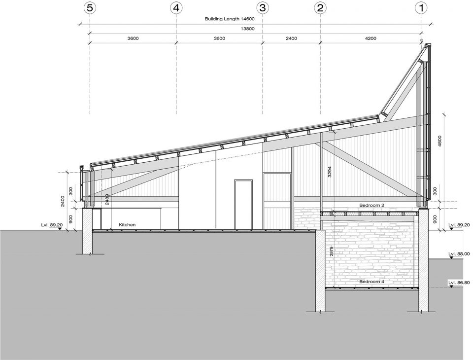 4个14.50 m跨度的sal木框架由多个胶合木板和薄钢拉杆组成,支撑着整个用木材覆盖的屋顶、隔热的建筑外壳、整个木质的夹层,并塑造了标志性的双层玻璃天窗。整个房子被悬挂在这些坚固的桁架框架中,没有任何中间柱的支撑,使得一种不受干扰的地形轮廓流进入静谧的松木镶板的室内空间。精心雕琢的方形窗户,朝向各个方向,让使用者得以禅观各个山峰和不断变化的云。