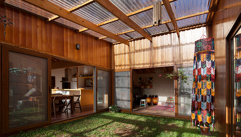 穿插在住宅当中的绿色庭院,通向起居空间、办公空间和主卧。