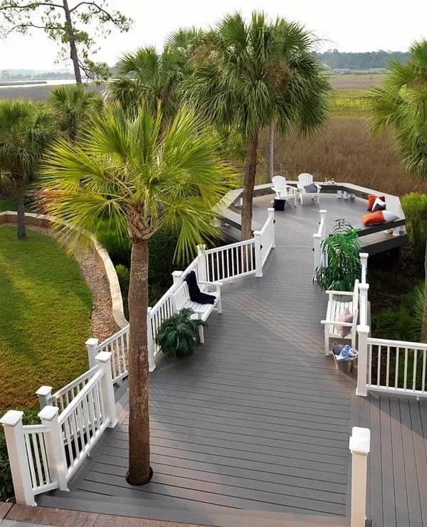 当然了,木平台甲板的设计风格任由设计师发挥,可以通过添加树木或绿廊,甲板的设计有很多种方式,下面这些案例你可以根据自己口味来重新设计,现在开始吧,一起看看!