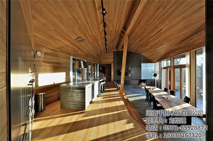 其中采用大窗户或落地大窗,为了达到能源需求和建筑风格的平衡,我们会评估,什么时候需要阳光什么时候需要避免,使用屋檐长度来调整阳光照射是木屋一般设计的常规方式,并能使室内空间更加舒适和节能。或平??梢约虻サ卦谡龇孔又芪У奈蓍苌显龃蟪叽?,由于屋顶的高度,形状和长度对房屋的整体外观有重大影响,也能创造不一样的特别效果,特别对于原木屋来说,更加加重了厚重朴实豪华的感觉。