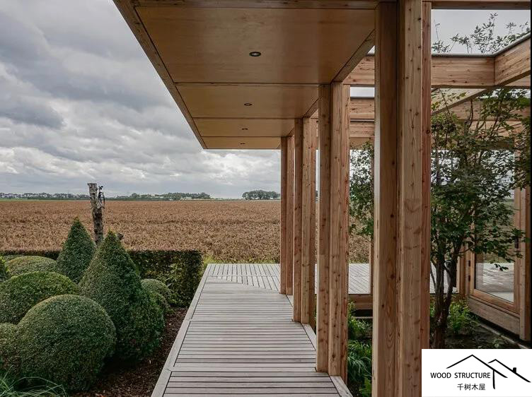 在堤坝和农田之间的花园里,VLOT建筑师设计了一座小房子。客户的主要目标是创造一个地方,他们可以享受花园和农田的景观。它被演绎设计成一个与周围环境交织在一起的木质结构。现有的植物和树木被纳入结构中。整个玻璃幕墙可以打开,这样做是在淡化内部和外部的边界;屋顶悬挑而出增加了这一点,并创造了一个渐进的过渡。Buitenhuis住宅的内部尺寸为54平方米,但是,当天气好的时候,整个室内外甲板面积会扩大到210平方米。地板从花园里抬高了一些,这样花园植物就在甲板下继续延伸生长着。