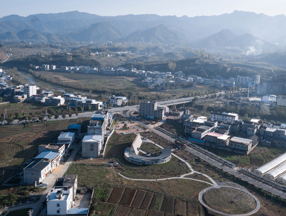 在竹溪县龙坝镇,一条新的市政道路“长龙大道”以30度的切角与原有乡镇的的主入口交叉而过,在与原有乡镇的主干道之间的三角形地块,便是草莓园活动馆和采摘园的用地。龙坝镇政府希望以草莓的培育,采摘以及相关体验活动,作为龙坝镇田园经济的新起点,在新老道路的交叉口,形成乡村活力的切入点。