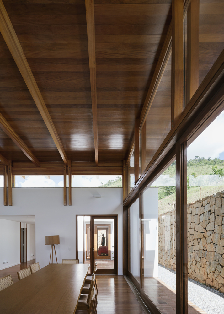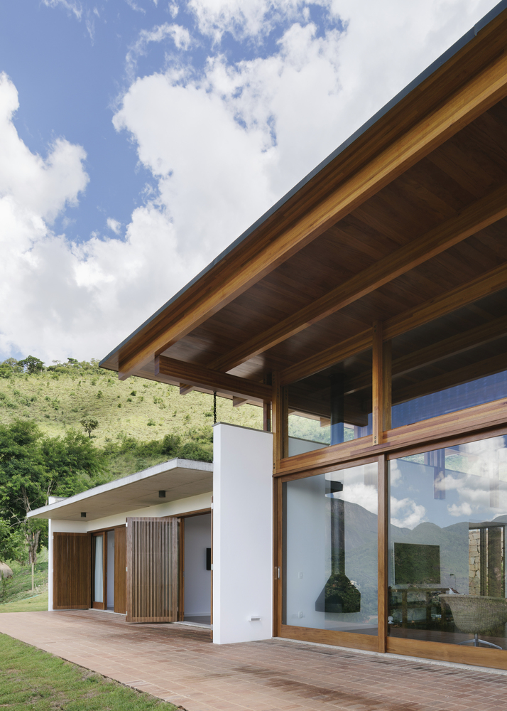 这些方案的连接形成结构轴心,创造了两条连接到外部的路径:纵向的轴可以变为绝美的外部景观,至于另一条横向的轴线,则可以明确表现出多种多样的交叉路口和配制出房屋的居住形式的环境。单层的构造再一次确保了环境之间连续性以及内外空间连续性的这一前提。通过扩展房屋在同一区域中的所有内在应用,探索不同的地块应用与体验得以成为可能。或是在内,或是在外。只有在游泳池的位置有一处楼层平面变化,其被两个卧室侧厅的厚片所整平。