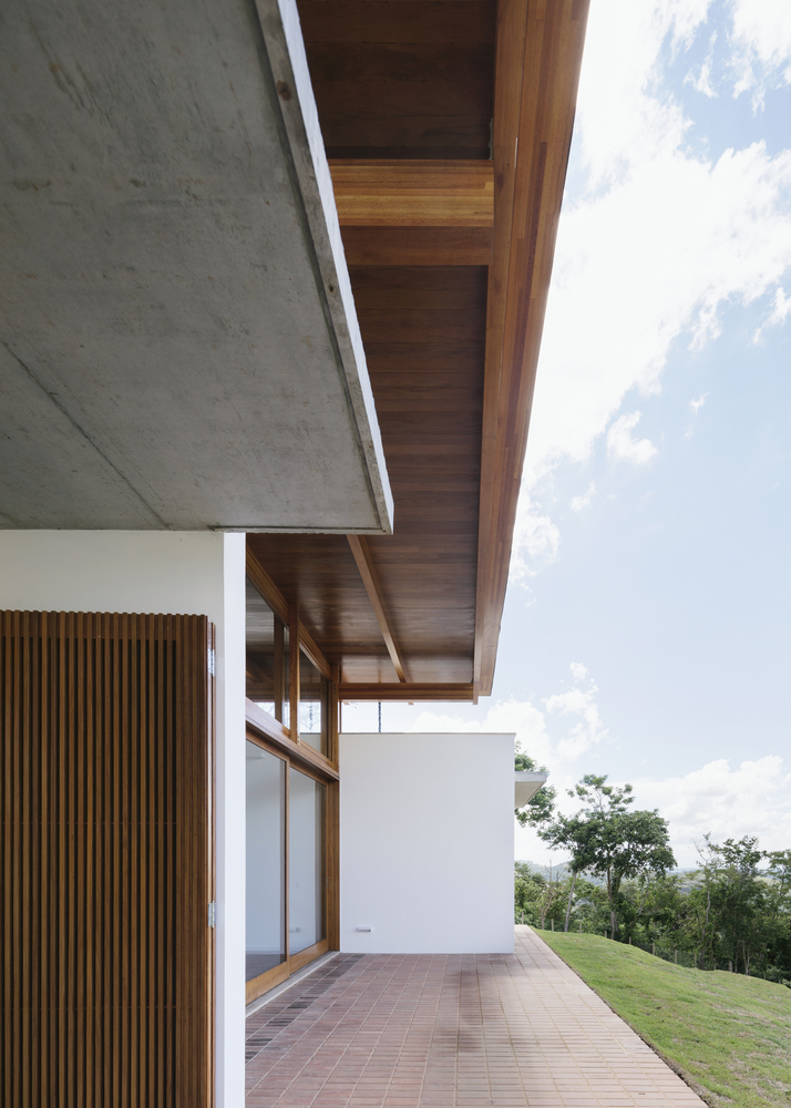 被草坪覆盖后,它们形成了新的楼层,使得观景台的结构布置有个空中的穹顶做?;?。所有与外部相连的空间和它们之间的联系被再次强化作为给每一处环境的空间结构塑形的元素的拓展。这种向外的空间延申在墙体的布局的连续性的中可以被看到,混凝土雨棚,门廊楼层——富有泥土气息的腔调暗示着该地区的泥土风情。这种刻意避免严格限定的风格追求创造一种外部壳体,强化它与周边景观的联系。